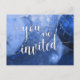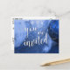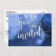 As palavras "você é convidado" foram reproduzidas em uma bela fonte moderna de escrita manual e adicionadas como uma camada de imagem. A foto por trás apresenta uma foto original, em azul, de um aglomerado de ornamentos de árvores de Natal, tirada de perto. Os ornamentos são vidro rachado e bolas brilhantes. // Use os campos modelo no verso para incluir seus detalhes pessoais. // 53 // Foto e design de Melody Watson para Paper Muserie.