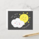 A nuvem ilustrada desenhada à mão e os emojis de sol com a saudação "Tu és o meu sol".