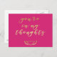 NewParkLane - Cartão postal de simpatia elegante para expressar as suas condolências, ou para desejar melhoras a alguém que está doente, com a citação 'Você está nos meus pensamentos' em ouro, tipografia de pincel, com um coração alado dourado, contra um fundo rosa framboesa.