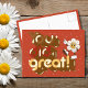 Celebre conquistas com este cartão postal 'Você Fez Muito Bem!' inspirado no estilo retrô, apresentando tipografia lúdica e um mascote de flor alegre. Perfeito para formaturas, promoções ou qualquer ocasião digna de celebração! Personalize as cores do texto, flor e fundo para combinar com seu estilo ou as cores favoritas do destinatário. Uma maneira divertida e versátil de espalhar positividade e encorajamento!