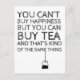 Uma variedade de produtos para amantes de chá com um slogan divertido
