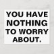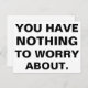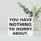 Texto preto sólido sobre branco - "você não tem nada com que se preocupar." Grandes letras de bloqueio, nenhum texto de rico ou fotos bonitas aqui - apenas uma simples declaração para o pessoas se preocupar.