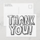 Perfeito para crianças, este cartão postal de agradecimento ilustrado e com letras maiúsculas desenhadas à mão em preto e branco simples permite que qualquer pessoa seja o artista e pinte as letras e o fundo para tornar a arte de escrever um bilhete de agradecimento um pouco mais divertida. No verso, um endereço de retorno personalizado torna ainda mais fácil escrever e enviar uma nota de agradecimento, além do porte postal econômico de um cartão postal.