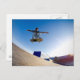 Skateboarder sobrevoando uma rampa no pôr do sol no skatepark local.
