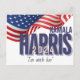 Mostre ao país que pertence como o próximo Presidente dos Estados Unidos com este na moda personalizável cartão postal! Kamala Harris 2024 em texto patriótico e colorido com uma bandeira americana ondulada. O texto "estou com ela" pode ser personalizado ou permanecer como está.