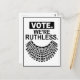 Faça uma declaração ousada com este cartão postal "Vote, Somos Ruthless!" com o colar dissidente RBG (Ruth Bader Ginsburg). Este cartão-postal, que é um poderoso lembrete da importância da votação e da defesa da justiça. Mostre seu apoio à defesa do voto e honre o legado da RBG enviando esse cartão postal a amigos, familiares e colegas ativistas. Com a sua design impressionante e a sua mensagem empoderadora, este cartão postal é perfeito para reunir eleitores e inspirar noivado político.