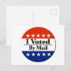 Por que arriscar sair em mau tempo, ficar na fila por horas a fio, ou pegar algum vírus de se reunir com muitos estranhos? Votem por correio nesta época eleitoral primária ou geral. Leve todo o tempo que precisar do conforto da sua casa para considerar todos os candidatos e questões nas urnas. Se você não tem certeza de algo, procure-o online. É como uma preferencialmente de livros abertos do que um teste de pop. Exerça o seu direito constitucional de voto, mas faça-o nas suas próprias condições. Consulte o seu conselho eleitoral para saber os requisitos. Então evite o atraso no dia da eleição quando você votar pelo correio. Arrume seu próprio botão ou adesivo para espalhar a palavra.