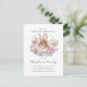 Cartão Postal Watercolor Bunny and Pink Flowers Easter Party