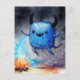 Cartão Postal Watercolor Cute Blue Monster and a Campfire