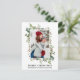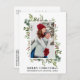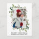 Elegante Watercolor Winter Greenery Merry Christmas Casal Photo Holiday Postcard inclui folhas de eucalipto e groselhas vermelhas.