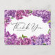 Envie obrigados com este obrigado personalizável que você faz o cartão-postal. Apresenta flores lilás de aquarela com caligrafia branca. Personalize adicionando seus detalhes. Este obrigado floral que você faz cartão postal é perfeito para uso pessoal e comercial.
