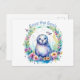 15 de março é o Dia Internacional de Ação para os Selos. Design apresenta um selo de aquarela rodeado por flores e peixes com "salvar as focas".