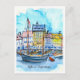 Cartão Postal Watercolor Sketch Nyhavn Copenhagen