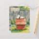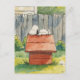 Cartão Postal Watercolor Sleeping Dog on Red Doghouse Art