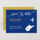 Você escolheu um lugar especial para o seu casamento. Agora é hora de celebrá-lo com esse guardar o cartão postal, com um mapa da silhueta e um pequeno avião a caminho do seu destino. Para mover o coração para o lugar do seu casamento, clique em personalizar e, em seguida, "personalizar ainda mais".