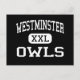 Vá Westminster Owls! #1 em Westminster Maryland. Mostre seu apoio para os Westminster High School Owls enquanto você está elegante. Personalize este design Westminster Owls com seu esporte favorito, atividade ou grupo escolar. Personalize com seu nome e número da camiseta, ou o nome do seu jogador favorito e número da camiseta. Se você é ex-aluno, formando ou graduado recente, você pode personalizar com o seu ano de graduação! Essas camisetas Westminster Owls, presentes, moletons, camisetas, adesivos, canecas, mousepads