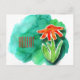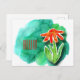 Cartão Postal Whimsic Floral Hello Green Watercolor