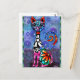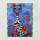 Cartão Postal Whimsical Big-Eyed Funky Abstract Kitty Cat