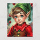 A sweet personalized Christmas postcard with a cute elf cartoon and a festive background. On the back you can add your own special holiday greeting and names.