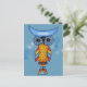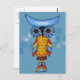 Imagem do meu desenho a cores originais. Esta coruja abstrato funda tem grandes olhos redondos, azuis e brancos. Sua cabeça é azul-claro, seu corpo é amarelo profundo com asas e cauda feitas em listras de azul, vermelho e amarelo. Ele está contra um fundo de azul com um círculo e design de ponto. Veja minha loja Art by MAR para combinar produtos com este design.