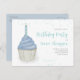 Este design apresenta um convite para cupcakes bonitinho para crianças com velas azuis de aniversário, um código QR para mais informações e o URL do seu partido, e um ícone no Facebook para a página de eventos nas redes sociais. uma festa divertida, um roteiro de caligrafia na moda, um doce doce bolo de sobremesa criativo, com cores pastéis, design de tipografia, um adorável convite para crianças festas de aniversário, uma árvore estilo al glacé, um tema do bolo de cupcake de aniversário para crianças festas de aniversário convites para cartões postais amigáveis
