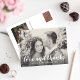 Na moda obrigado de casamento que você posta modelo de cartão apresenta "amor e obrigados" em uma fonte de script manuscrito com monograma personalizado. Inclui uma foto paisagem da noiva e do noivo no lado frontal e uma foto quadrada menor com texto personalizado que pode ser personalizado no lado traseiro da placa. O esquema de cores preto e branco clássico pode ser completamente personalizado. Filtros de fotos (incluindo B/S e sepia) também estão disponíveis via personalização.