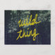 Tipo escrito à mão, "Coisa Selvagem" em camadas sobre a fotografia da floresta.