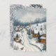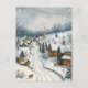 Capturar a magia do inverno com este charmoso cartão postal com uma cena de serena vila de neve. O painterly design retrata um dia pacífico de inverno em uma cidade antiquada, onde a luz suave das janelas adiciona um encanto confortável às ruas silenciosas e cobertas de neve.