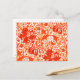 Cartão-postal num impressão floral William Morris de lírios estilizados e irlandeses, melhorado digitalmente e colorido, em tons de luz a laranja mandarim profundo num fundo branco, colorido digitalmente e melhorado