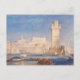 Rodes. Joseph Mallord William Turner (1775 - 1851). Uma paisagem agradável em tons rosas e azuis. No primeiro plano estão barcos e naves na baía perto das paredes da cidade. no meio, há uma torre alta. Ao fundo há uma cidade com casas de pedra. Reprodução de famosas imagens de arte no dominio público.