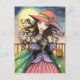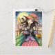 Cartão Postal Winds of Halloween Witch Tabby Cat Art