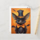 Este divertido design do morcego de Halloween apresenta um chapéu alto, orelhas largas, gravata de arco laranja, e pequenas asas sobre um fundo laranja brilhante. Um personagem caprichoso e assustador perfeito para decoração de Halloween, correio de caracol ou coleta sazonal.