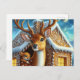 Cartão Postal Winter Deer Family in Gingerbread House Postcard