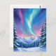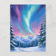 Cartão Postal Winter Night Northern Lights Watercolor Mountain
