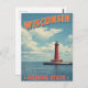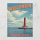 Celebrate the beauty of the Badger State with this vintage-inspired Wisconsin postcard. Featuring a striking red lighthouse under bright blue skies, it captures the peaceful charm of the Great Lakes. Perfect for travelers, collectors, or fans of coastal and nautical art — great for mailing, framing, or gifting.