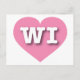 Este cartão-postal apresenta um legal e calmo coração cor-de-rosa contendo as letras maiúsculas, brancas e em negrito WI, a abreviação oficial de Wisconsin, o estado do texugo. O reverso do cartão postal é vazio, aguardando seu texto personalizado ou sentimentos manuscritos.