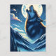 Um lobo uivava na lua, banhado em sua luz de prata, contra um pano de fundo de um céu noturno estrelado e picos de montanha.