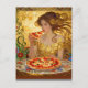 Cartão Postal Woman Eating Pizza Faux Klimt Art
