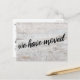 Mantenha seus amigos e familiares atualizados com seu novo endereço usando esses cartões postais rústicos. O design apresenta gráficos de tipografia audaciosos e casuais que leem "nós nos movemos" na frente e "ficamos em contato!" no verso, usando uma fonte moderna, elegante e ousada escrita à mão. Use os campos modelo para adicionar todos os seus próprios detalhes para personalizar este design para seu próprio uso. Se você quiser alterar a fonte versátil, serif que usei para o texto editável ou se quiser mover algumas linhas para outro lugar, clique no link para personalizar a placa ainda mais. O tipo preto foi colocado sobre uma imagem de madeira rústica e branqueada com pistas de cinza e bege. 89 //