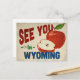 Um cartão postal encantador da viagens vintage Wyoming, com uma adorável maçã vermelha, juntamente com um texto divertido no estilo retrô, que diz, "Vemo-nos no Wyoming"