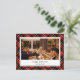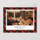 Cartão de Férias Único, clássico, de moda, bonito e decorativo. Mensagem de texto e sala de saudação de Feliz ano novo bonito para personalizar ou personalizar com uma foto e um nome de família (ou nomes individuais) de sua escolha, em um fundo de xadrez preto, branco, amarelo e vermelho de cor clássica.