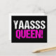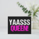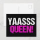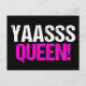 Yaasss Rainha. Yass Rainha é uma citação engraçada da cultura popular usada por garotas atrevidas e drag queens divas. Um cartão postal preto e rosa vibrante fofo.