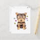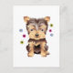 A cute Yorkshire Terrier puppy sitting, with six brightly coloured flowers around it. Three at each side. A great gift for everyone who loves a Yorkie.