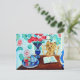 Este adorável Yorkie está sentado na mesa, fazendo um dever de casa. É um cartão postal, especialmente para voltar à escola. Se você fizer o dever de casa, pode ser qualquer coisa que quiser. Tirada da minha pintura original. ©LynHamerCook