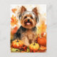 Cartão Postal Yorkshire Terrier Outono Dia de Ação de Graças