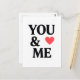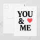 Cartão Postal YOU & ME with Heart Minimal Valentine’s Day Typogr