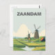 Entre no charme pitoresco do campo holandês com este cartão postal vintage com os moinhos de vento icônicos de Zaandam. Estes moinhos de vento históricos, colocados contra campos verdes e cursos de água tranquilos, captam a essência da vida tradicional holandesa. Com sua design retrorada, este cartão-postal convida vocês a explorar a beleza do eterno e a história rica da Holanda