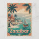 Veleja para a beleza serena de Zanzibar com este cartão postal ao estilo vintage, com um litoral tranquilo e um barco à vela tradicional. O design captura o charme eterno do Oceano Índico e a rica herança cultural desse paraíso tropical. Perfeito para colecionadores de temas litorais exóticos de viagem e de vintage.