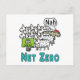 O Net Zero design mostra ovelhas seguindo ordens de um ambientalista furioso. Uma ovelha diz "Nah" e escolhe uma direção diferente. As palavras "Net Zero" abaixo explicam ainda mais esta divertida mensagem anti-net zero.