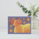 Aries o carneiro se coloca contra um céu noturno cheio de estrelas ouros. Sinal de fogo, 21 de março - 20 de abril (pode haver variação nas datas). Cartão postal com um design personalizável dourado, laranja, roxo e azul na frente para que você personalize com seu próprio texto, imagens e ideias. Um lápis de cor original e desenho de tinta metálica de Jess Perry.